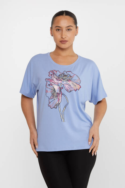 بلوز رنگی سنگ دوزی آستین کوتاه آبی - 79634 | KAZEE (مجموعه 4 M-L-XL-2XL)