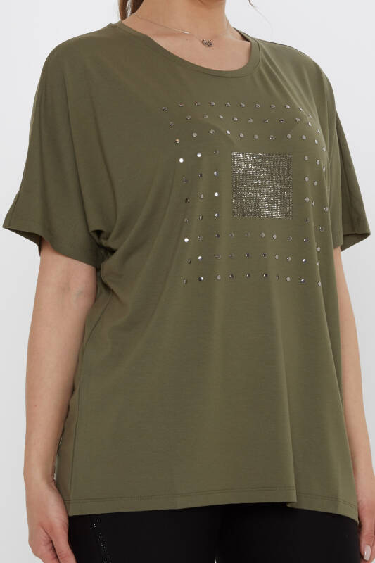 Bluz Taş İşlemeli Kısa Kollu Haki - 79603 | KAZEE (4'lü Set L-XL-2XL-3XL)