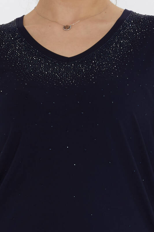 Bluz Taş İşlemeli V Yaka Lacivert - 80034 | KAZEE (3'lü Set M-L-XL)