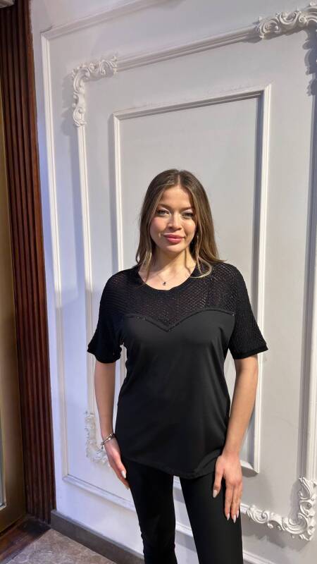 Bluz Taş İşlemeli Siyah - 80122 | KAZEE (3'lü Set M-L-XL)