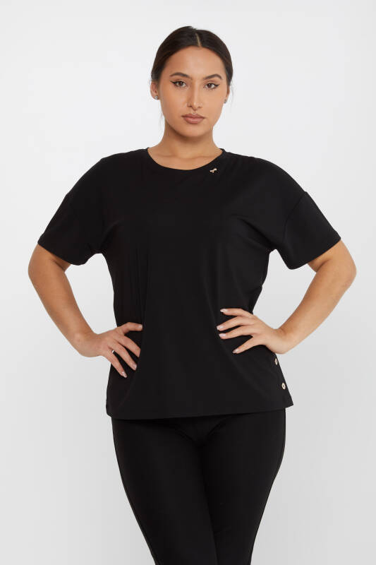 بلوز آستین کوتاه دکمه دار مشکی - 79998 | KAZEE (ست 3 M-L-XL)