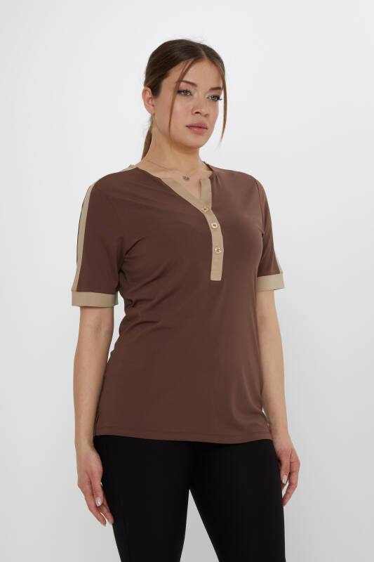 Bluză cu mânecă scurtă cu nasturi decolteu în V Maro - 80024 | KAZEE (Set de 3 M-L-XL)