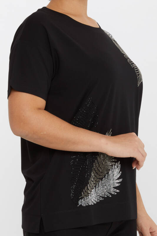 Bluză Frunze Cu Motiv Piatra Brodat Maneca Scurta Neagra - 80013 | KAZEE (Set de 3 L-XL-2XL)