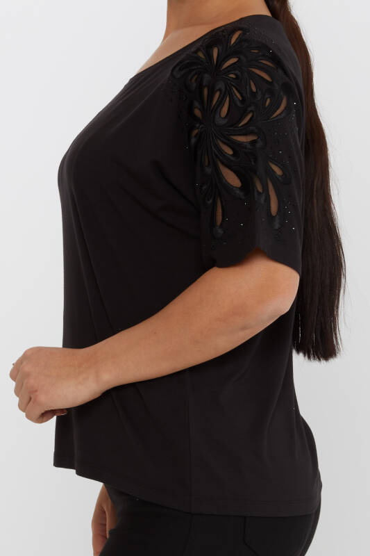 Bluza Maneci Brodata Pietra Brodata Neagra - 79916 | KAZEE (Set de 4 L-XL-2XL-3XL)