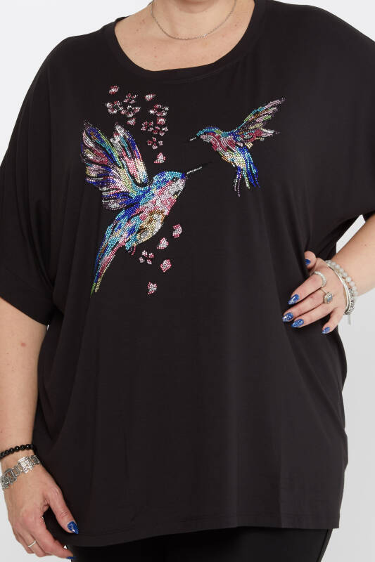 Bluză Pasăre Cu Motiv Piatră Brodat Negru - 79948 | KAZEE (Set de 4 M-L-XL-2XL)