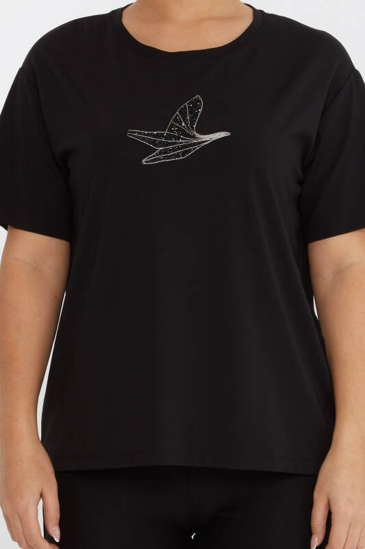 Bluză Pasăre Cu Motiv Piatră Brodat Negru - 79995 | KAZEE (Set de 3 M-L-XL)