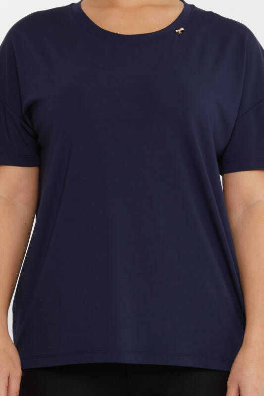 Блузка с короткими рукавами и каменными пуговицами, темно-синяя — 79998 | КАЗИ (набор из 3 шт. M-L-XL)