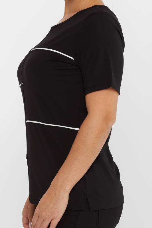 Bluză Star Button Mânecă Scurtă Neagră - 80061 | KAZEE (Set de 3 M-L-XL)