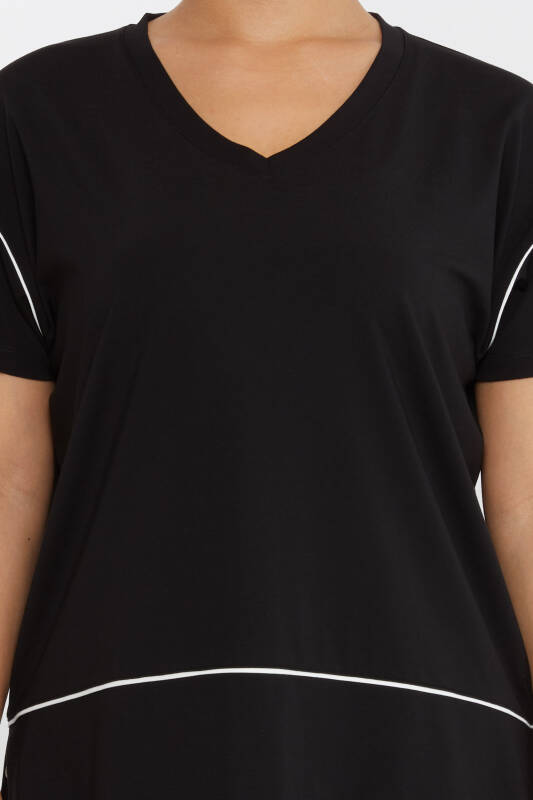 Bluzka z dekoltem w serek i krótkim rękawem, czarna - 80002 | KAZEE (zestaw 3 sztuk M-L-XL)