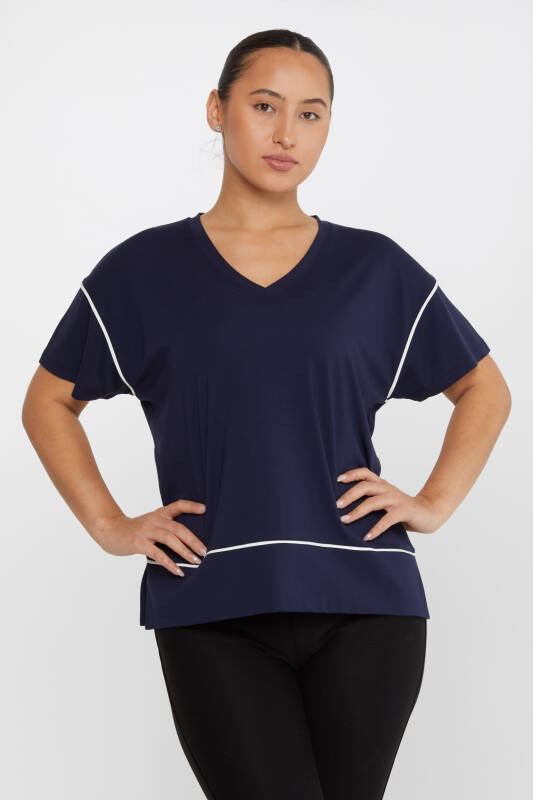 Bluzka z dekoltem w serek i krótkim rękawem w kolorze granatowym - 80002 | KAZEE (zestaw 3 sztuk M-L-XL)