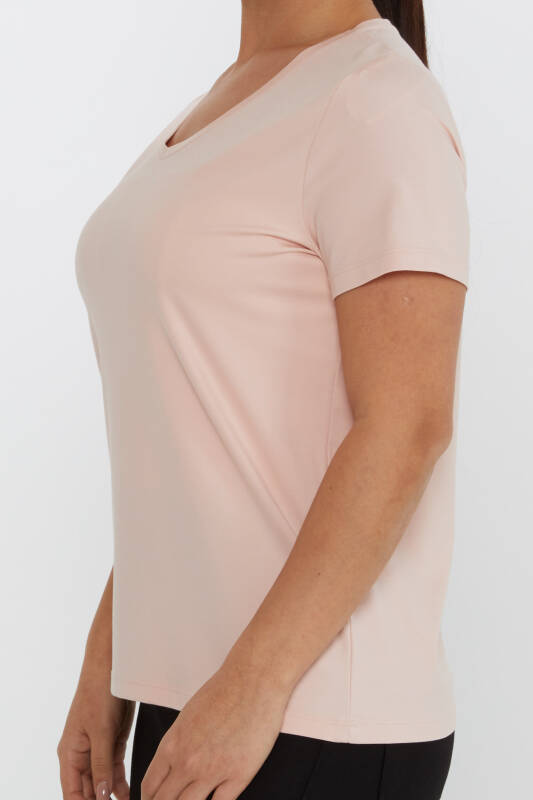 Bluzka z haftowanym dekoltem w serek w kolorze pudrowym - 80014 | KAZEE (zestaw 3 sztuk S-M-L)