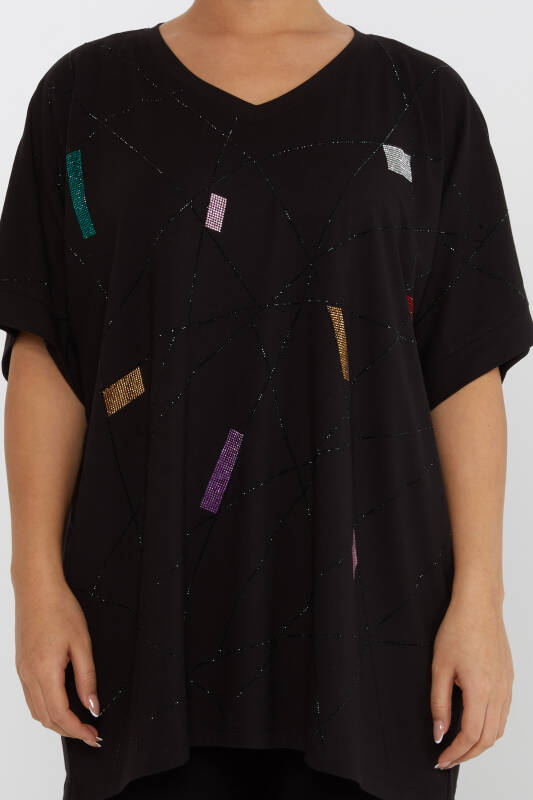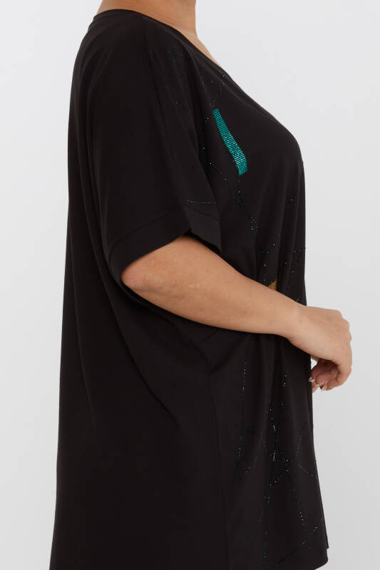 Bluzka Stone haftowana z krótkim rękawem w kolorze czarnym - 80110 | KAZEE (zestaw 4 sztuk M-L-XL-2XL)