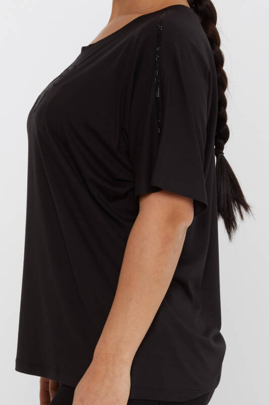 Bluzka z kokardą i haftem w kolorze czarnym - 79892 | KAZEE (zestaw 4 sztuk L-XL-2XL-3XL)