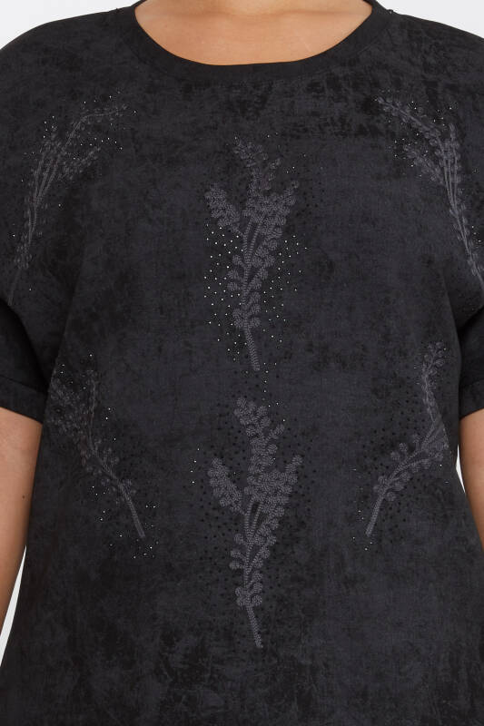 Bluzka z haftem w liście i kamieniem z krótkim rękawem czarna - 79993 | KAZEE (zestaw 3 sztuk M-L-XL)