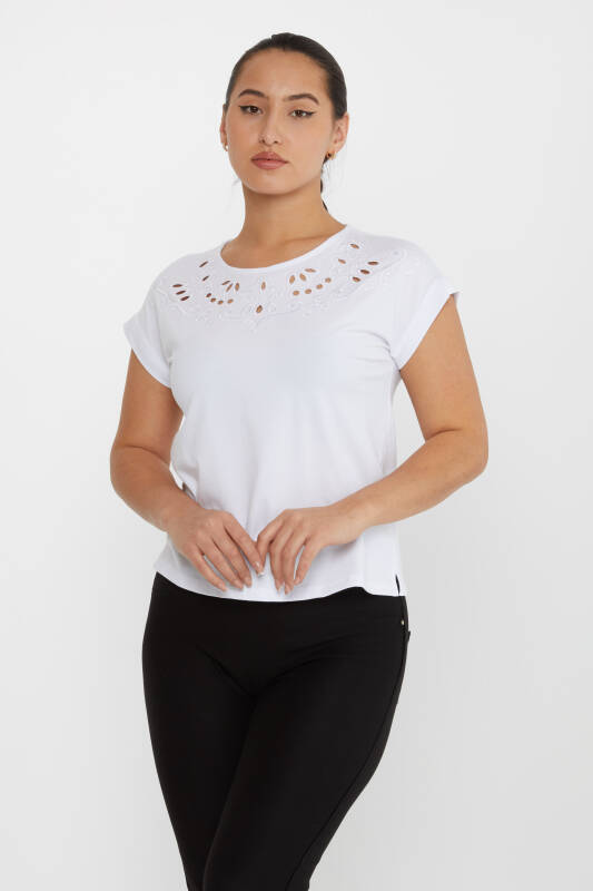 Блузка с вышивкой в виде отверстия цвета экрю - 79872 | KAZEE (Набор из 4 шт. S-M-L-XL)