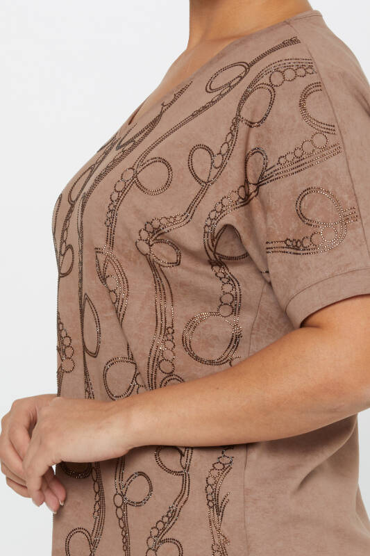Блузка с коротким рукавом и каменной вышивкой, светло-коричневая - 79991 | КАЗИ (набор из 3 шт. M-L-XL)