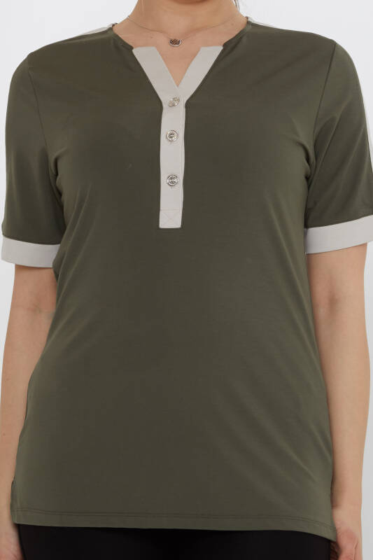 Блузка с коротким рукавом, на пуговицах, с V-образным вырезом, цвета хаки - 80024 | KAZEE (Набор из 3 шт. M-L-XL)