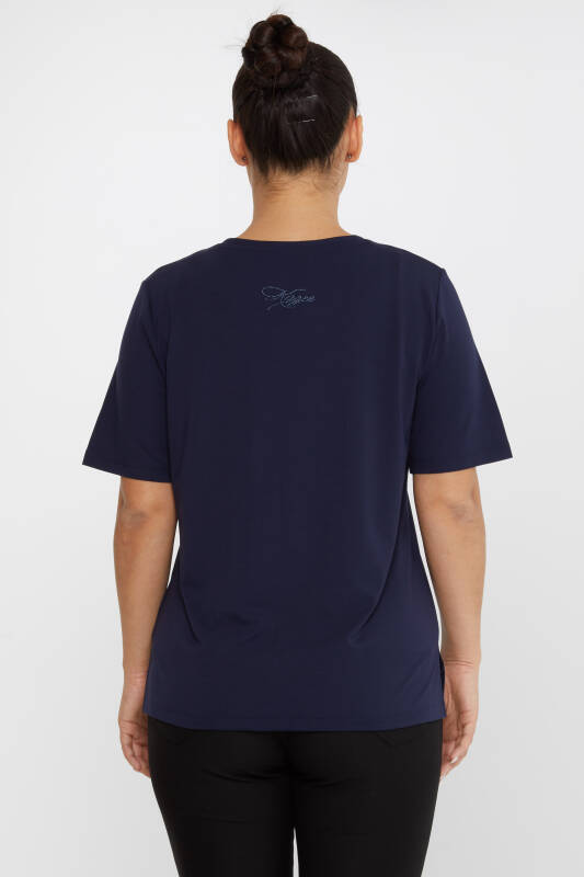 Блузка с разрезом и коротким рукавом, темно-синяя - 80015 | KAZEE (Набор из 3 шт. L-XL-2XL)