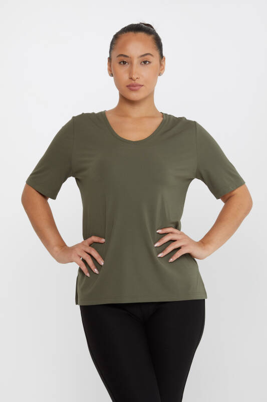 Блузка с разрезом и коротким рукавом цвета хаки - 80015 | KAZEE (Набор из 3 шт. L-XL-2XL)