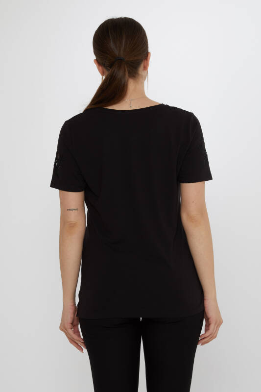 Блузка с узором «Роза» и вышивкой из камней, черная - 80125 | KAZEE (Набор из 3 шт. M-L-XL)