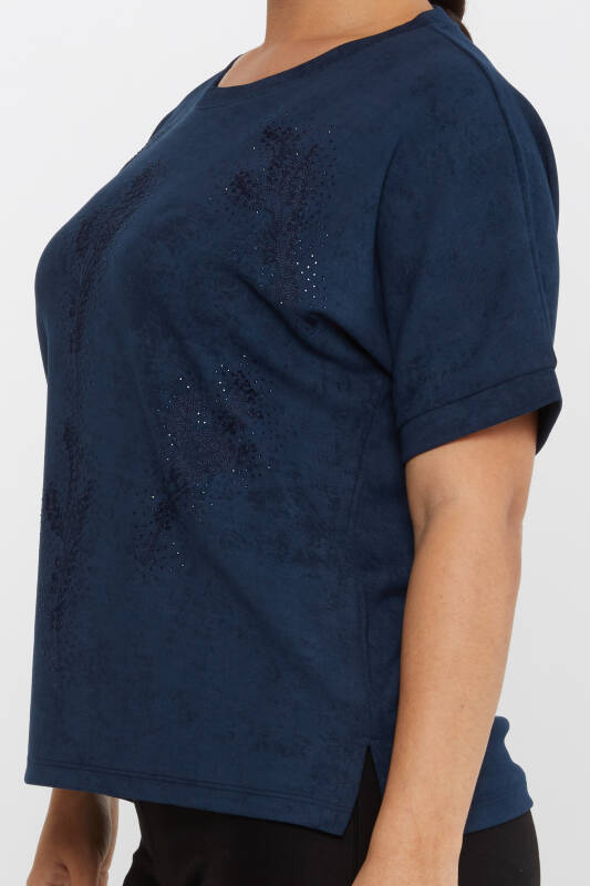 Блузка с вышивкой листьев и каменной вышивкой с коротким рукавом, темно-синяя - 79993 | КАЗИ (набор из 3 шт. M-L-XL)