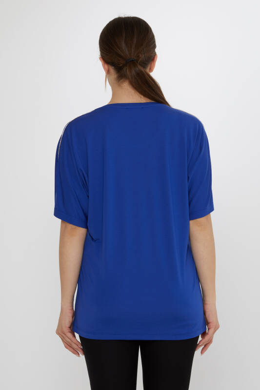 Блузка с вышивкой камнями, короткий рукав, саксонская - 80031 | KAZEE (Набор из 3 шт. M-L-XL)