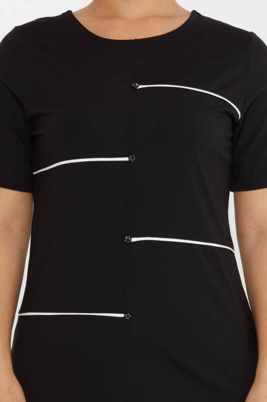 Блузка со звездными пуговицами, короткий рукав, черная - 80061 | KAZEE (Набор из 3 шт. M-L-XL)