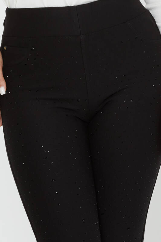 Брюки с эластичной резинкой на талии, черные с каменной вышивкой - 3735 | КАЗИ (набор из 4 шт. 42-44-46-48)