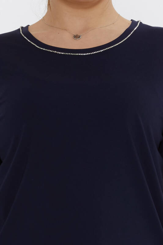 Blusa Collo Dettaglio Pietra Manica Corta Blu Navy - 80030 | KAZEE (Set di 3 M-L-XL)