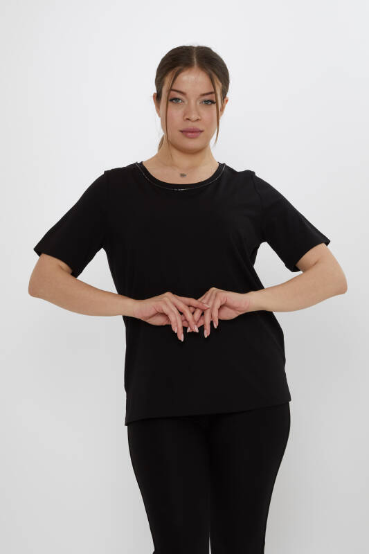 Camicetta Collo Pietra Dettagli Manica Corta Nero - 80030 | KAZEE (Set di 3 M-L-XL)