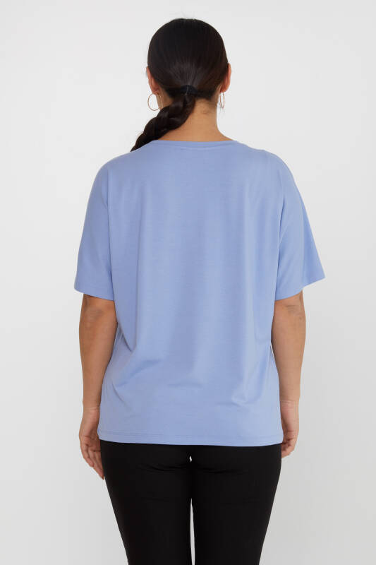 Camicetta con fiocco e dettagli in pietra ricamati blu - 79892 | KAZEE (Set di 4 L-XL-2XL-3XL)