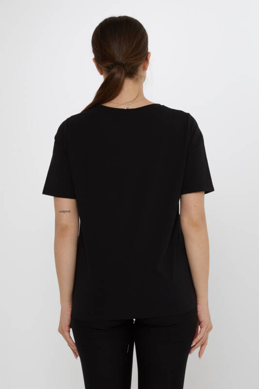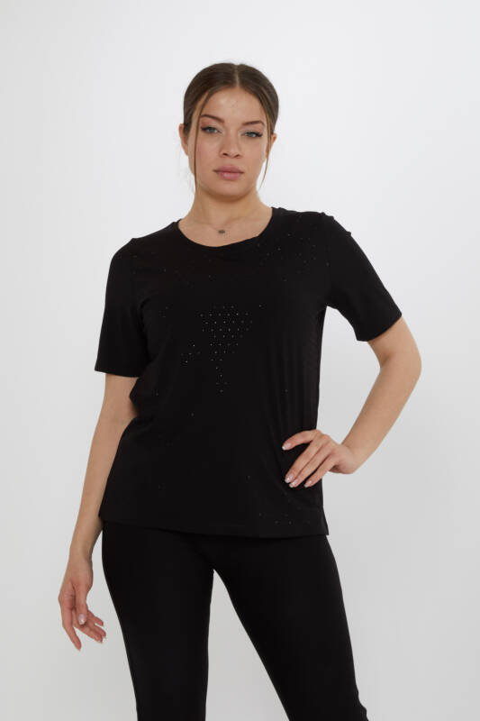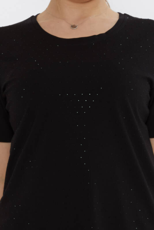 Blusa Manica Corta Pietra Ricamata Nero - 80033 | KAZEE (Set di 3 M-L-XL)