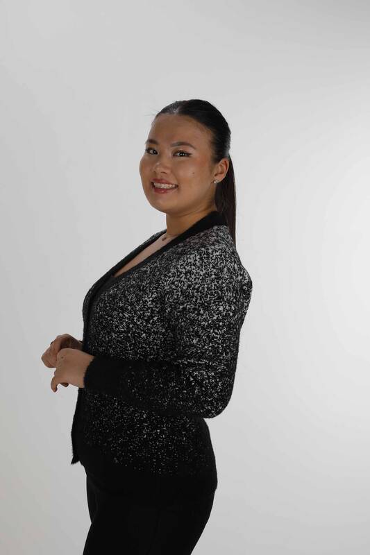 Cardigan angora cu decolteu în V Negru Ecru - 30897 | KAZEE (Set de 4 S-M-L-XL)