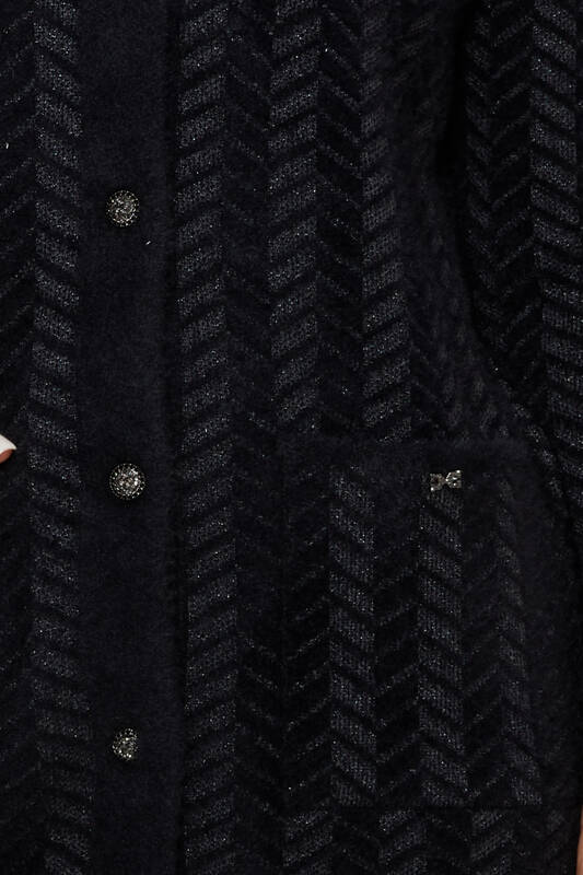 Cárdigan de angora con detalle de bolsillo y botones, negro - 30816 | KAZEE (Juego de 4 tallas L-XL-2XL-3XL)