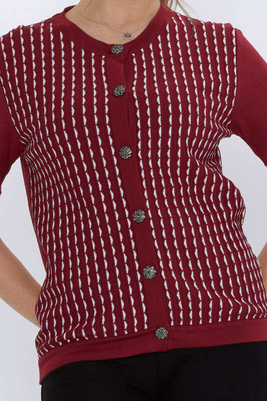 Cardigan en tricot à boutons et motifs détaillés Bordeaux Rouge-Os - 31800 | KAZEE (Lot de 3 S-M-L)