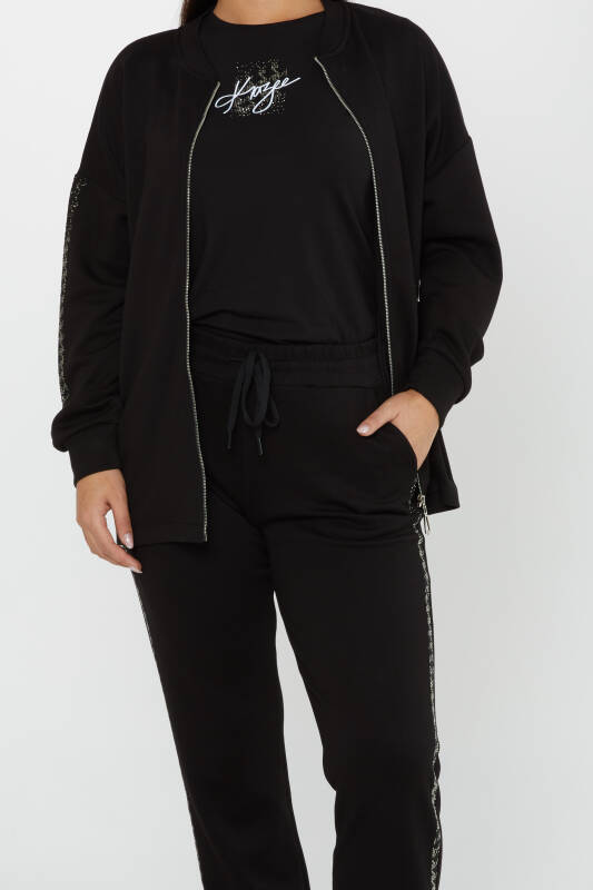 Conjunto Chándal Cremallera Bordado Piedra Negro - 17615 | KAZEE (Juego de 4 S-M-L-XL)