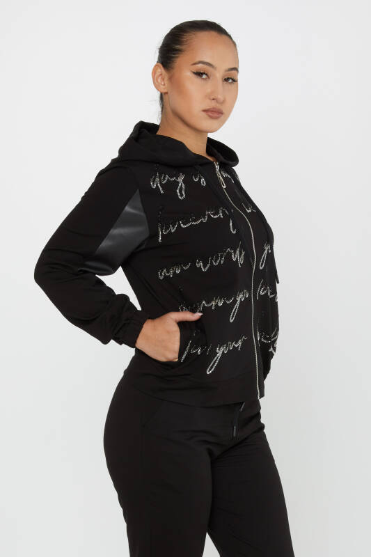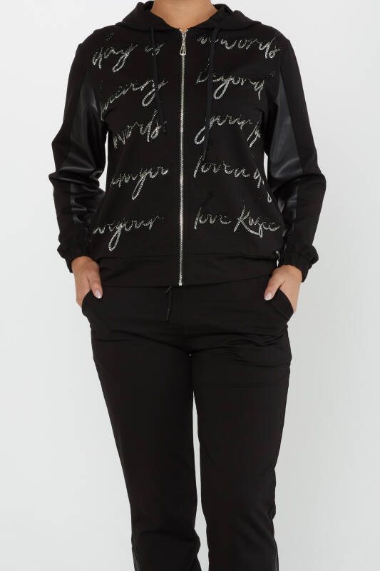 Conjunto de Chándal Negro con Detalle de Texto y Cremallera - 17476 | KAZEE (Juego de 4 S-M-L-XL)