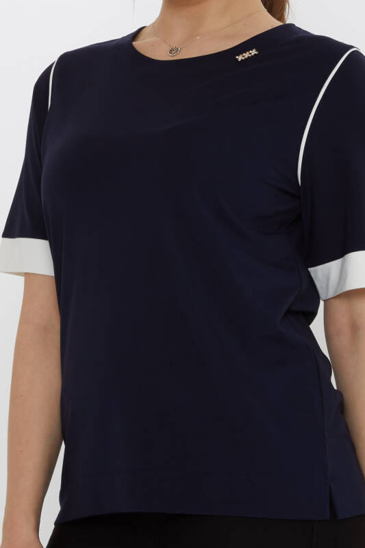 Chemisier col rond manches courtes bleu marine - 80028 | KAZEE (Lot de 3 M-L-XL)