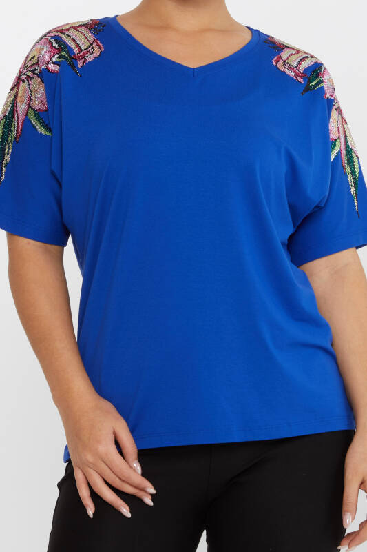Chemisier Fleur Pierre Brodée Manches Courtes Saxe - 79585 | KAZEE (Lot de 4 M-L-XL-2XL)