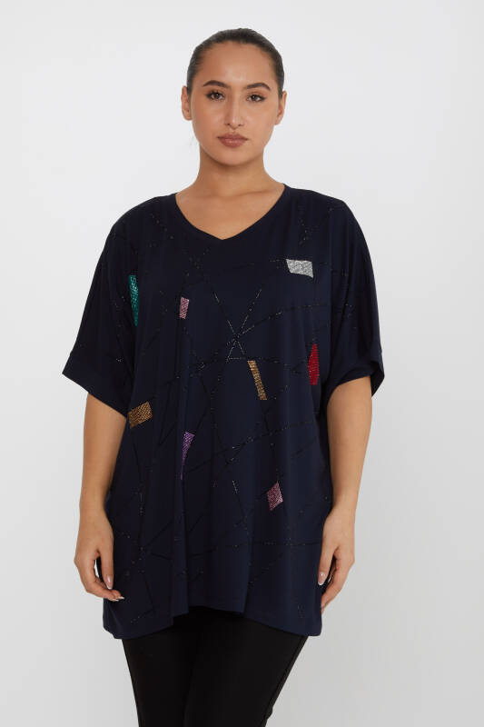 Chemisier Pierre Brodé Manches Courtes Bleu Marine - 80110 | KAZEE (Lot de 4 M-L-XL-2XL)