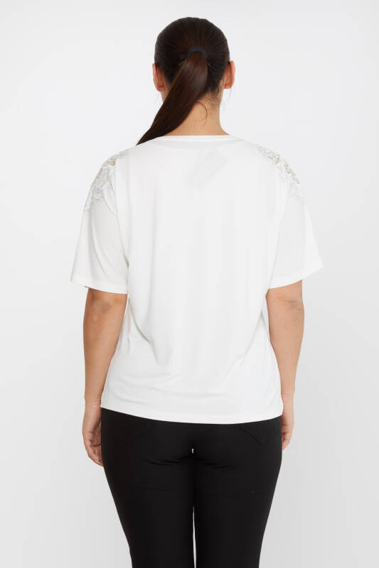 Chemisier Rose Broderie Stoned Ecru - 80062 | KAZEE (Lot de 4 L-XL-2XL-3XL)
