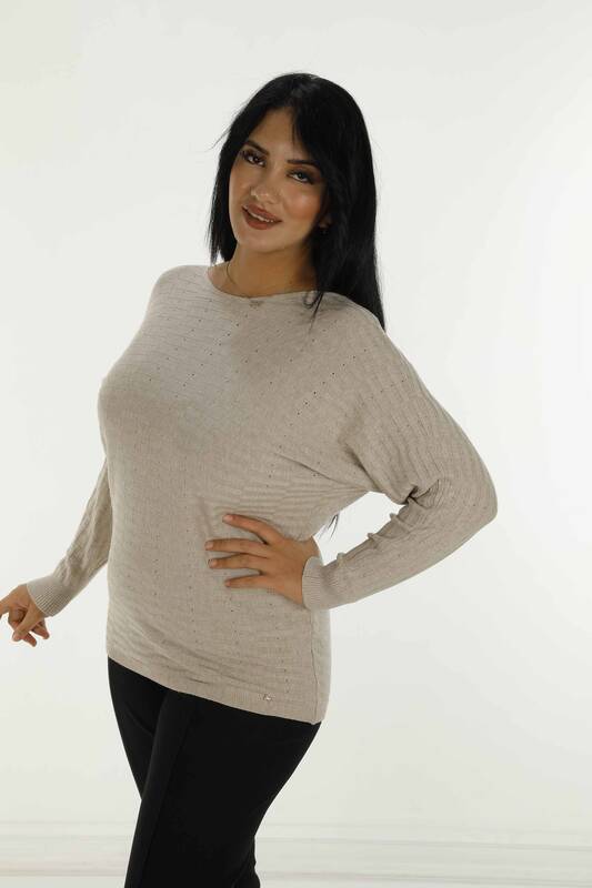 Tricot à manches longues et col bateau Beige - 31007 | KAZÉE