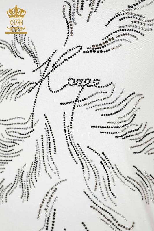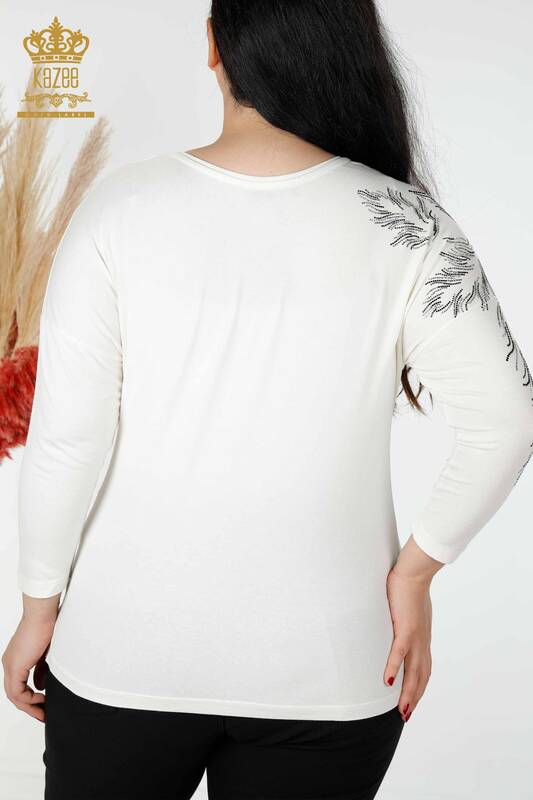 Camicetta da donna all'ingrosso con motivo a foglia con ricamo in pietra Ecru -77970 / KAZEE