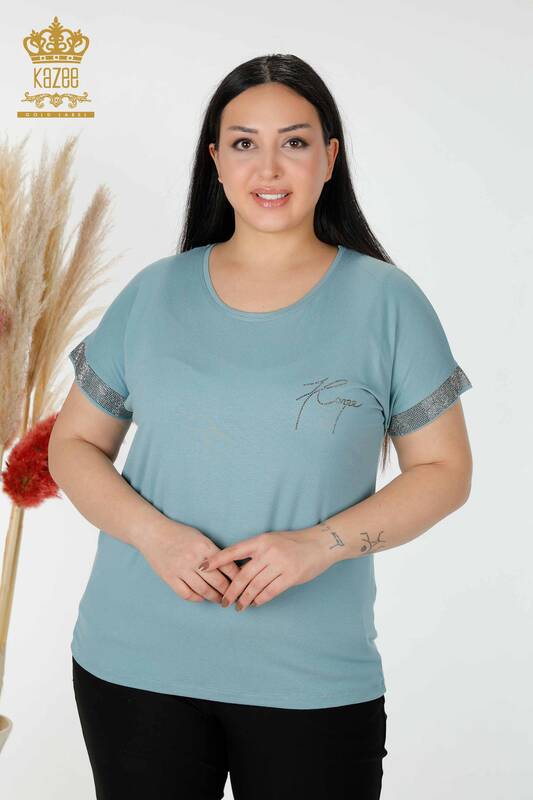 Camicetta da donna all'ingrosso con ricamo in pietra Modello americano Mint - 78918 / KAZEE
