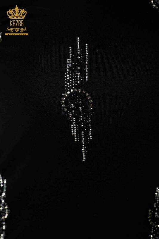 Camicetta di pietra di cristallo delle donne all'ingrosso ricamato modellato nero - 79043 / KAZEE