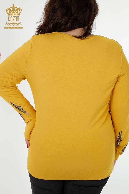 Camicetta delle donne all'ingrosso con pietra di cristallo ricamato modello zafferano -79043 / KAZEE