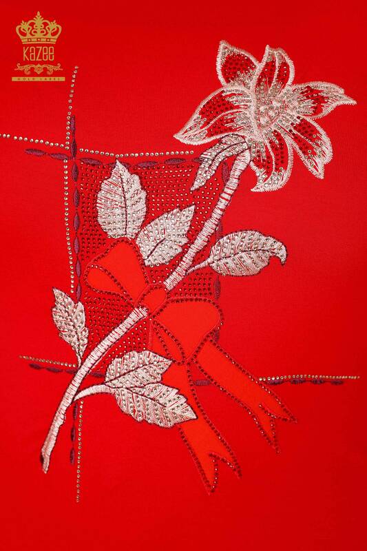 Camicetta delle donne all'ingrosso floreale Patterned Stone ricamato Red - 79011 / KAZEE