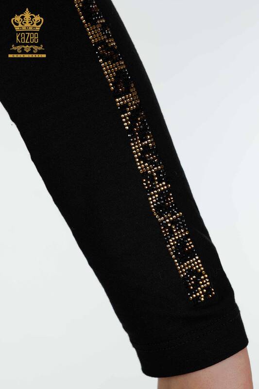 Camicetta delle donne all'ingrosso Tigre modellata pietra colorata ricamata nero-79050 / KAZEE