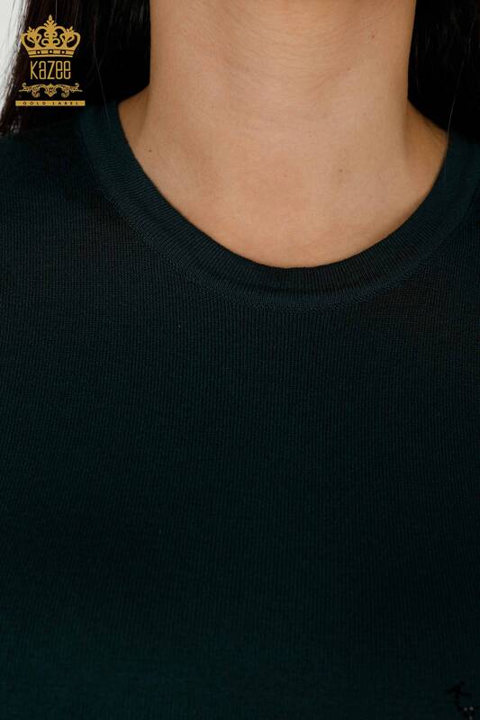 Maglieria donna all'ingrosso Gatto fantasia senza maniche con ricamo in pietra verde scuro - 16902 / KAZEE