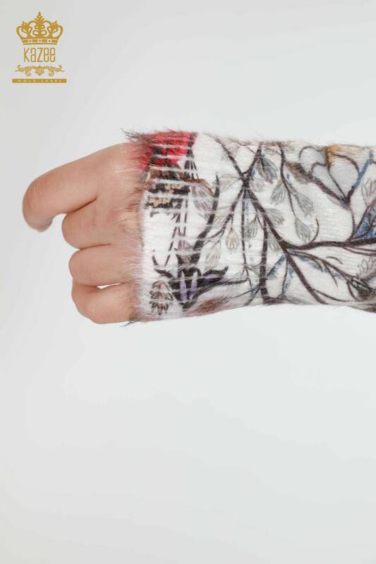 Maglione di maglieria delle donne all'ingrosso Stampa digitale con pietra ricamato modello Ecru -18978 / KAZEE